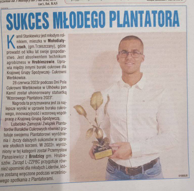 Gratulacje dla Młodych Liderów w uprawie buraków cukrowych na Ziemi hrubieszowskiej!!